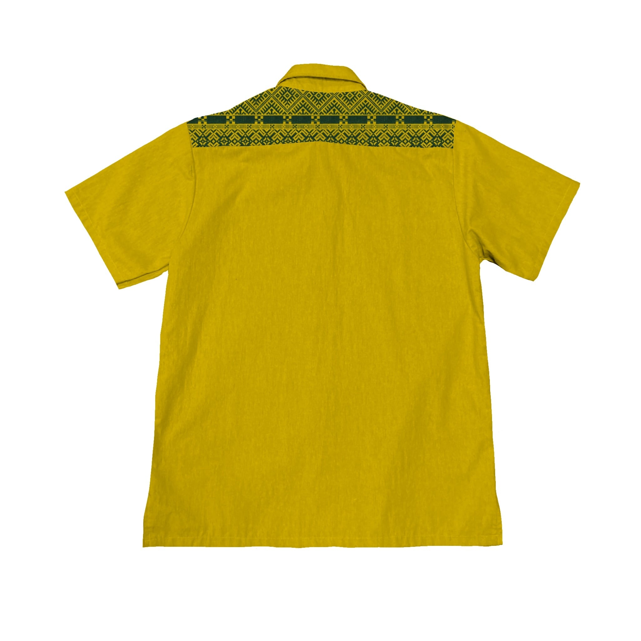 幾何学なシームレスパターン柄に永遠の幸せを表す模様として有名な沖縄のミンサー柄をあしらったかりゆしウェアです。カジュアルでもビジネスでも着こなせるデザインに仕上げていますので、様々なシーンで楽しめます。